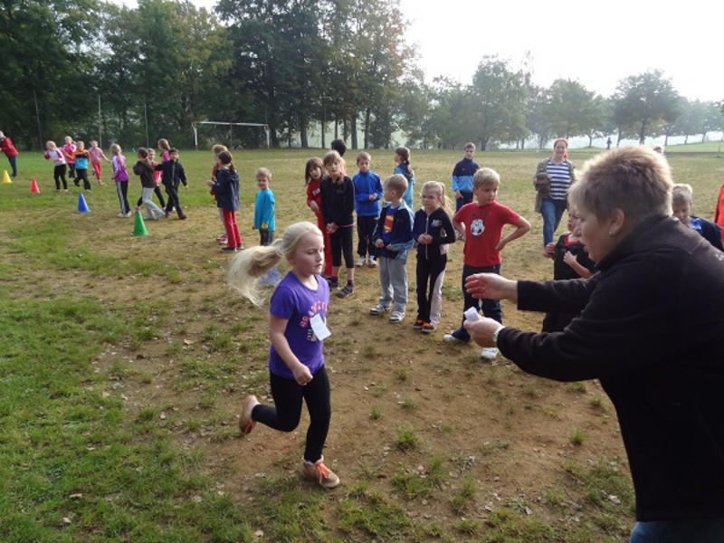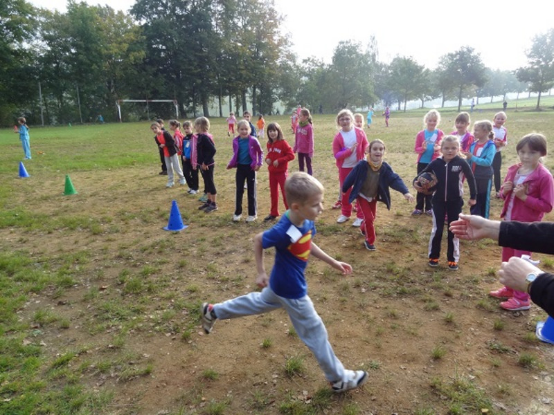 Der Monat Oktober bescherte uns am Freitag, den 10.10.2014, nochmals einen warmen, sonnigen Vormittag, so dass wir unseren für September geplanten Herbstcross doch noch durchführen konnten. Wie auch in den vergangenen Jahren fand dieser rings um den Sportplatz Pfaffendorf statt, wobei die Kinder der Klassen 1 und 2 eine Strecke von 600 m, die größeren Schüler der Klassen 3 und 4 reichlich 800 m zurücklegten. Alle unsere Sportler waren mit großem Eifer dabei, spornten sich untereinander an und erreichten geschafft, aber zumeist glücklich das Ziel. Unsere erfolgreichsten Schüler durften sich zur Siegerehrung über eine Medaille freuen: