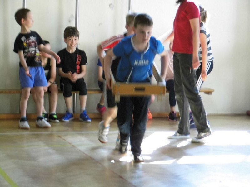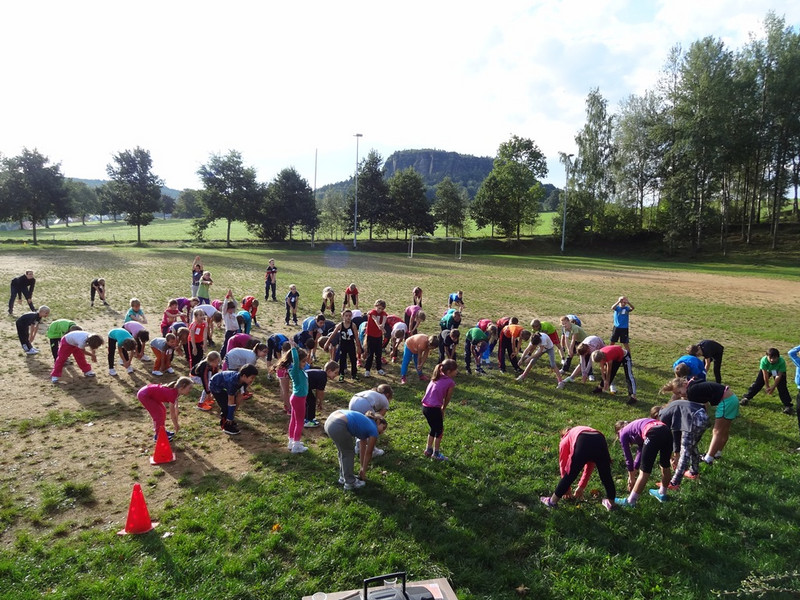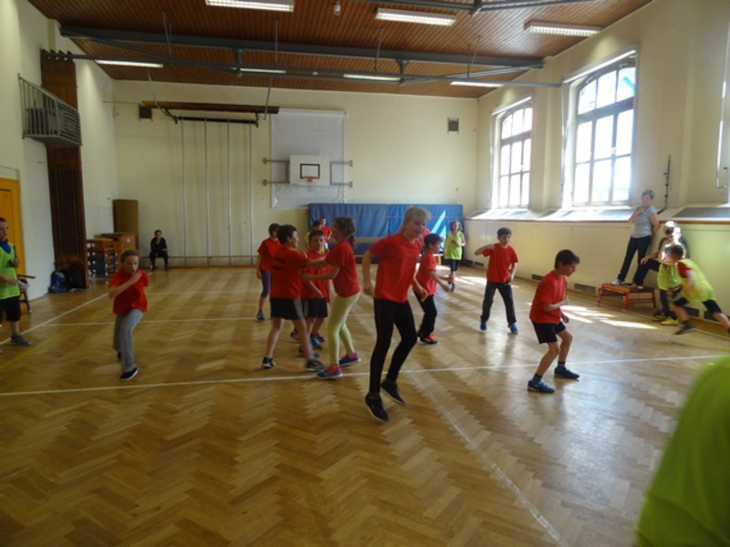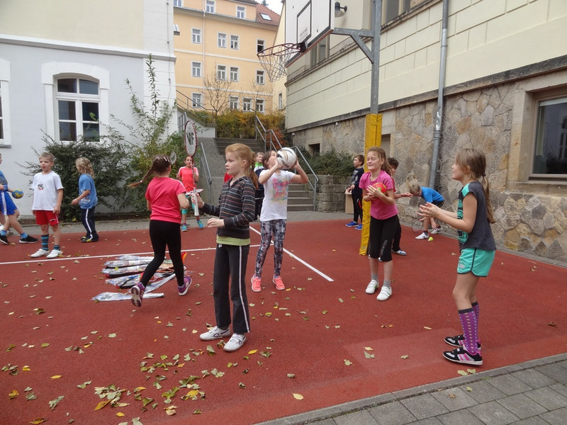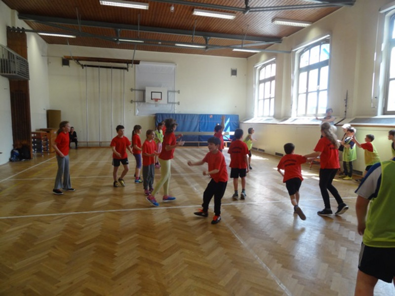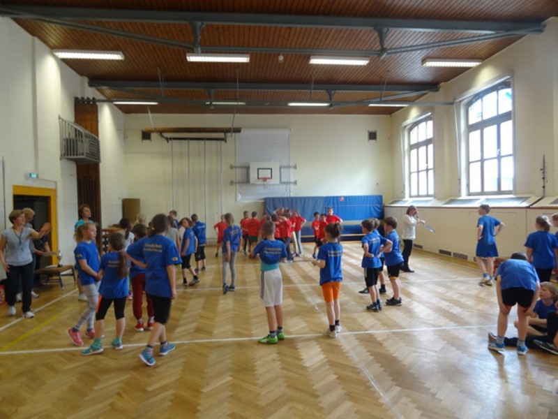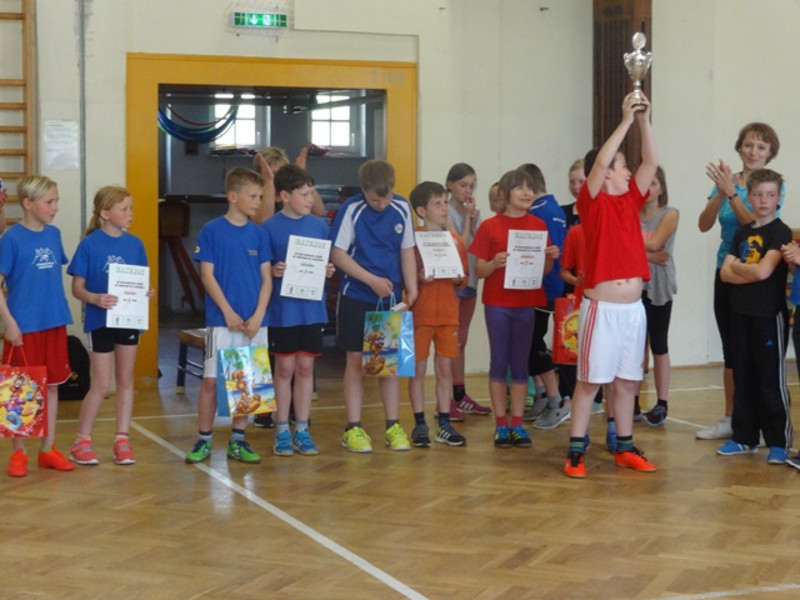 Am Mittwoch, dem 10.Mai 2017, kamen die Grundschüler aus Papstdorf, Rosenthal und Struppen in unsere Turnhalle nach Königstein zum jährlichen Turnier im Völkerball. Leider hatte am Vortag eine weitere Schule absagen müssen. Schon seit vielen Wochen trainierten die Kinder aus den dritten sowie vierten Klassen der jeweiligen Schule und nominierten schließlich ihre besten 6 Mädchen und 6 Jungen als Spieler für die Mannschaften. Die Auswahl unserer Schule war sehr aufgeregt, aber auch gespannt, wie sie wohl gegen die anderen Schulen abschneiden würde. In den ersten beiden Spielen gegen Rosenthal und Papstdorf konnten wir gewinnen und die Aufregung ließ etwas nach. Doch dann mussten wir gegen den Pokalgewinner des Vorjahres, die Grundschule Struppen, spielen! Unsere Viertklässler, die schon im vorigen Jahr dabei waren, konnten sich erinnern, dass die Kinder aus Struppen das Zuspiel untereinander ganz besonders gut beherrschten. In der Vorbereitung auf dieses Turnier wurde deshalb das Zuspielen besonders oft geprobt. Groß war der Schock bei uns allen, als zu Beginn des Spiels gegen die Struppener immer mehr Spieler unserer Mannschaft getroffen wurden und sich nur noch wenige Kinder im Feld befanden. Doch durch Teamgeist und Siegeswillen kämpften wir uns langsam zurück und konnten dann am Ende das Spielfeld der Struppener leeren. Die Freude war riesig, als wir Königsteiner dieses Spiel doch noch gewinnen konnten! Auch in der Rückrunde blieb unser Kampfgeist ungebrochen und wir siegten wieder gegen unsere ersten beiden Gegner. Als wir dann gegen die Struppener noch einmal gewinnen konnten, war der Jubel der Königsteiner Grundschüler unbeschreiblich!
