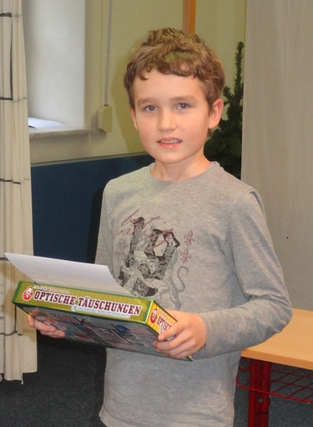 Nun kurz vor den Winterferien erhielten wir die Auswertung und konnten allen Schülern zur erfolgreichen Teilnahme gratulieren. Als Anerkennung erhielt jeder von ihnen eine Urkunde und ein kleines Spiel.
