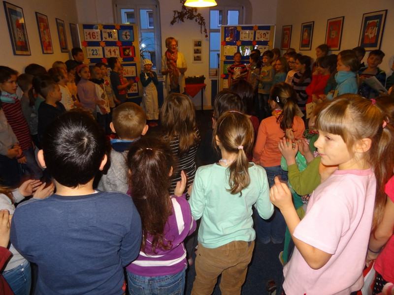 Am Vormittag des 20. November erlebten unsere Schüler ihre Grundschule für eine Stunde lang als Haus der Geschichten. In allen zur Verfügung stehenden Räumen und Fluren machten es sich die Kinder mit Kissen und Decken gemütlich und lauschten begeistert den lustigen, spannenden oder auch nachdenklich stimmenden Texten. Dabei standen den Kindern insgesamt 12 Angebote zur Auswahl. Alle freiwilligen Vorleser und wir Lehrerinnen bereiteten sich mit Freude auf die Lesezeit vor. Für unsere Kinder ging die schöne Zeit wieder einmal zu schnell vorbei – ein Zeichen dafür, dass es allen gelungen ist, Interesse und Freude am Lesen zu wecken. Im Namen unserer Schüler und Kolleginnen bedanke ich mich ganz herzlich bei unseren Vorlesern:
