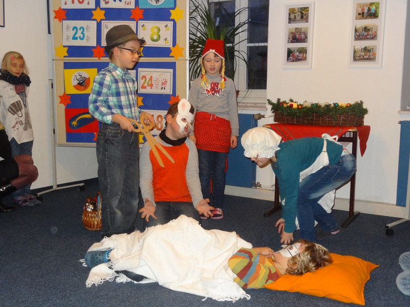 Als besondere Nikolausüberraschung hat uns die 2. Klasse das Märchen von "Rotkäppchen" vorgespielt.