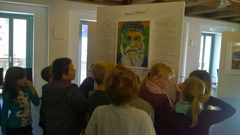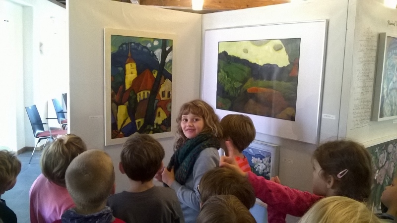Wir Grundschüler malen und zeichnen gern, schauen auch oft Reproduktionen berühmter Künstler an. Nun bot sich die Gelegenheit einmal ganz nah Originalbilder eines Malers zu betrachten. Toll! Die Kinder der 2. bis 4. Klasse besuchten die Galerie Rainer Dörners im Treffpunkt Königstein. Dort erfuhren sie einige wichtige Fakten aus seinem Leben, betrachteten unvoreingenommen die ausgestellten Kunstwerke, entdeckten neugierig viele Details seiner Landschaftsbilder, freuten sich über bekannte Motive aus unserer Heimat und staunten über die Preise. Zum Schluss fand jeder unter den vielen schönen Bildern sein Lieblingsbild und erklärte, warum es ihm besonders gefällt.