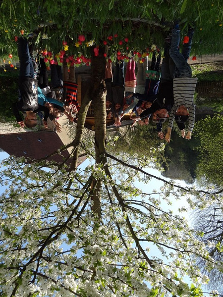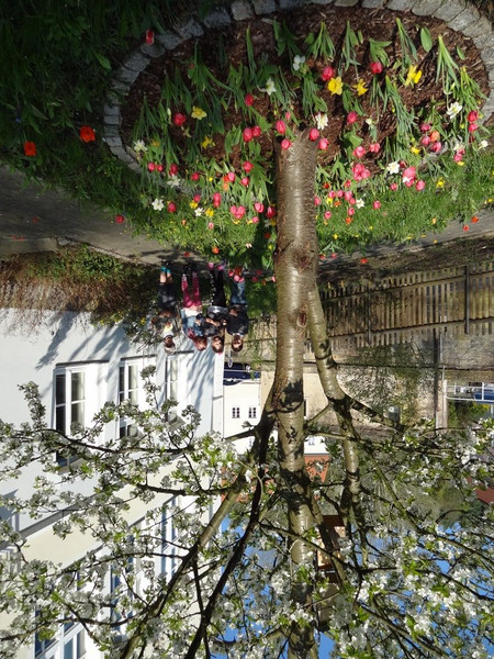 Kinder der 4. Klasse erweiterten die Bepflanzung auf dem Rondell rund um unseren Kirschbaum.