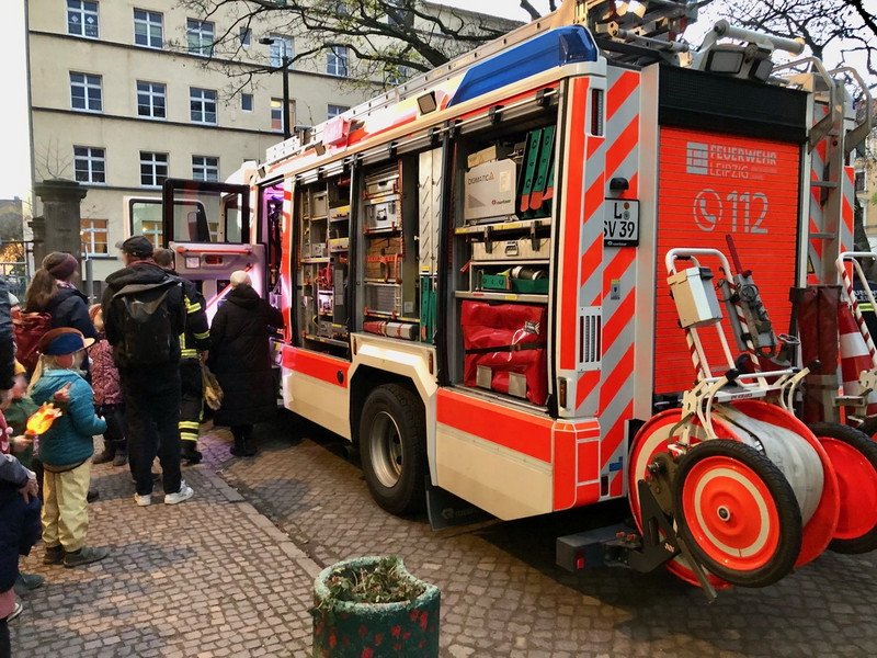 Am 13. November feierten wir auf unserem Schulhof wieder unser Laternenfest. An verschiedenen Ständen gab es Kinderpunsch, Waffeln, Schokofrüchte und Gebäck. Ein kleines Programm mit Theateraufführung und Gesang sorgte für kurzweilige Unterhaltung. In der Dunkelheit leuchteten dann endlich auch all die mitgebrachten Laternen und Lichter, und die Feuerschale spendete Licht und Wärme. Herr Auerswald lud mit seiner Gitarre und aktuellen Popsongs wieder zum Mitsingen ein. Auch in diesem Jahr hatten wir wieder eine Feuerwehr der Feuerwache Süd zu Gast, die jedoch schnell zu einem kurzen Einsatz ausrücken musste! Zur Freude aller Kinder kam der Einsatzwagen noch einmal auf den Schulhof zurück…