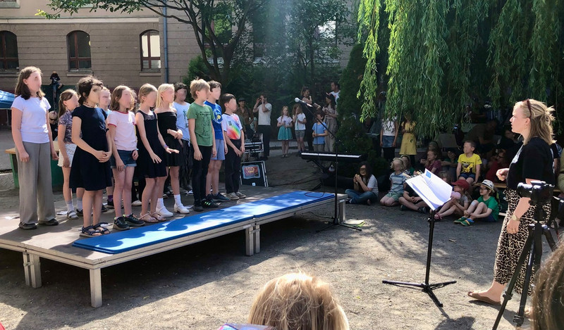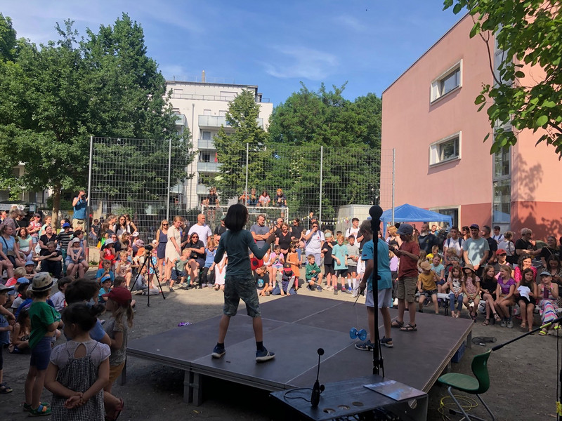 Das Fest startete mit einem bunten Bühnenprogramm, bei dem der Schulchor für emotionale Momente sorgte. Viele Kinder konnten im Anschluss ihre Talente zeigen; sie sangen, tanzten oder zeigten sportlich-künstlerische Stücke. Zum Abschluss gab es auf der Bühne wieder Lieder, begleitet von Gitarre und Tanz und eine kleine Kinderdisco.