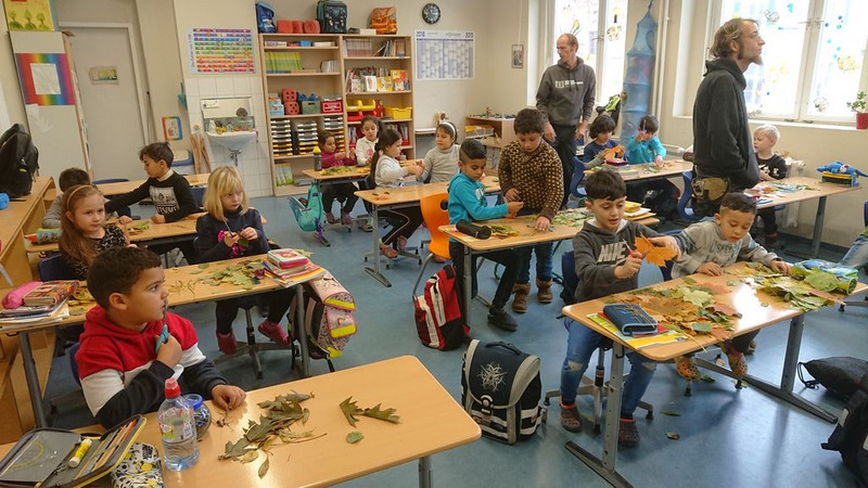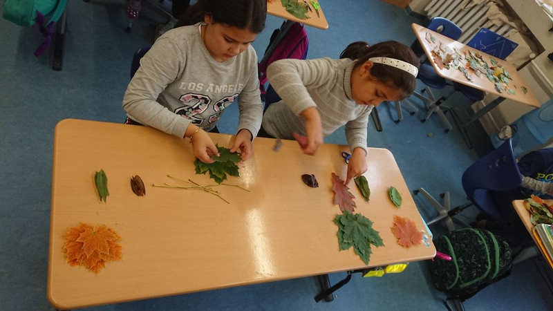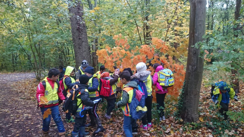 Das feucht-nasse Wetter konnte uns heute, am 24.10.2018, nichts anhaben, denn gemeinsam mit unseren neuen Kindern Mohammed und Alan ging es für die Klasse Plus in den herbstlich anmutenden Auwald. Ziel war es, sowohl eine Ulme ausfindig zu machen, die uns das kurze /u/ fassbar macht, als auch Blätter und Reste von Kastanien zu sammeln und in die Schule mitzubringen. Dabei mussten wir leider feststellen, dass auch im Auwald, womöglich aufgrund des anhaltenden Ulmensterbens, für uns kein Baum dieser Art mehr zu finden war. Umso mehr konnten wir uns dann aber auf das Blattwerk vieler weiterer Laubbäume stürzen, welches wir anschließend zu einem formschönen Laubgesicht verarbeiten werden.