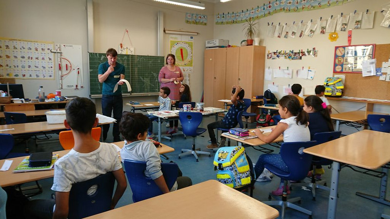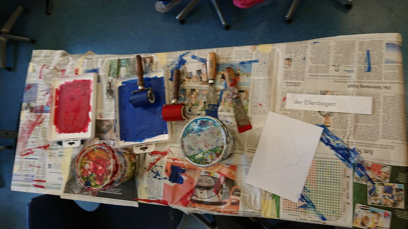 Auch in diesem Schuljahr hat uns erneut Oli mit seiner Begleiterin Anne vom Haus Steinstraße e.V. besucht, um gemeinsam mit den Kindern der Klasse Plus Wortschatzarbeit "zu drucken". Die SchülerInnen arbeiten an zwei Tagen in zwei Gruppen und verschaffen sich sprachbezogen einen Überblick über die Körperteile. Dabei gehen Sie mit echten Druckerwerkzeugen, u.a. Walzen oder einer massiven Druckerpresse, um. Das Ergebnis findet sich sodann im Klassenzimmer und kann von allen Eltern bestaunt werden.