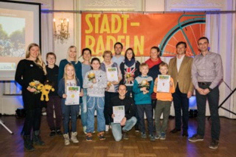 Außerdem wurde wie jedes Jahr das am weitesten hinten platzierte Team unter den Anwesenden mit einem Sonderpreis gewürdigt. Diese Auszeichnung wird stellvertretend für die vielen kleineren Teams verliehen, die am Wettbewerb teilnehmen. Denn jeder Kilometer beim STADTRADELN ist wichtig! Der Sonderpreis ging dieses Jahr an das Team "Minilöwen" mit 2.925,7 km.