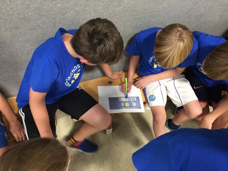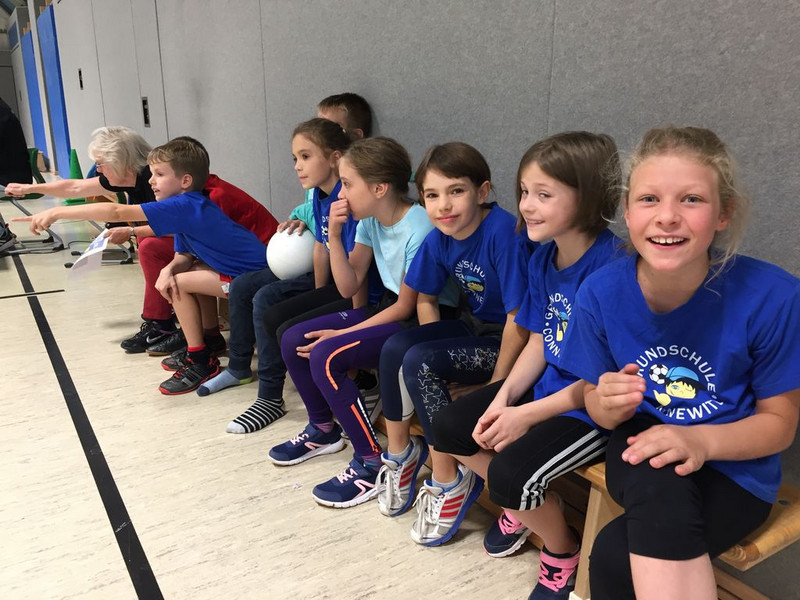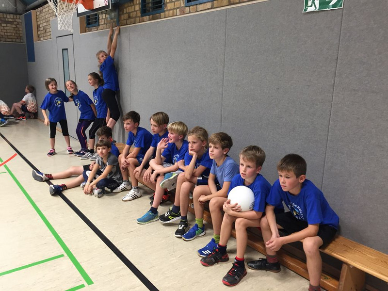 Während andere Kinder am Mittwoch in der sechsten Stunde im Unterricht schwitzten, begannen die Kinder der Schulmannschaft auch allmählich an auf Betriebstemperatur zu kommen. "Schul-mann-schaft! Schul-mann-schaft!", hallte es durch die Flure, als wir gemeinsam losgingen. Das Wetter blieb uns gesonnen und trockenen Fußes erreichten wir die 9. Grundschule. Rasch umgezogen trafen wir in der Turnhalle auf die sich schon warm spielenden Mannschaften des