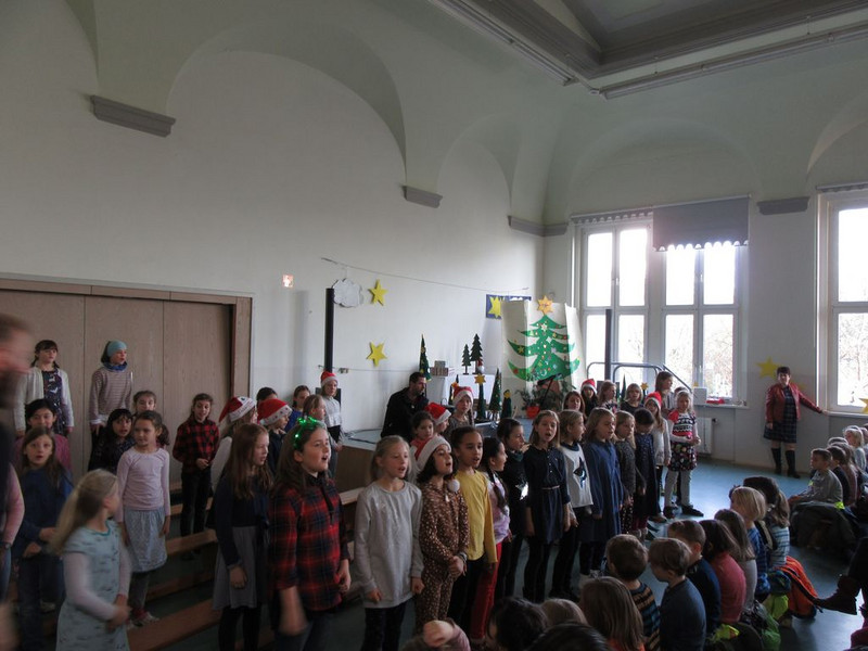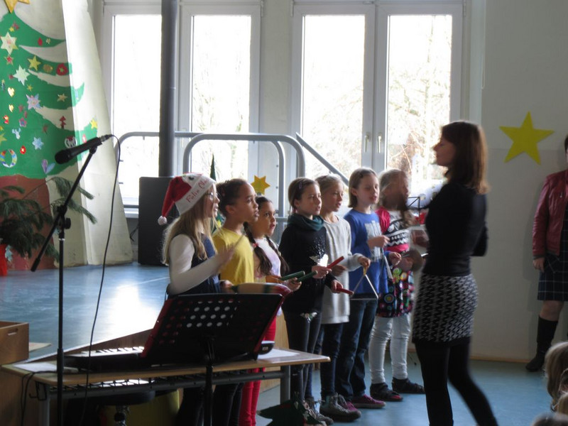 Wir probten schon längere Zeit im Chor für diesen Auftritt. Wir freuten uns sehr darauf. Am 19. Dezember waren wir sehr aufgeregt. Es hat uns viel Spaß gemacht. Alle Kinder haben toll mitgemacht. Auch die Lehrer haben ein Lied angestimmt. Es ist alles gut gelungen.