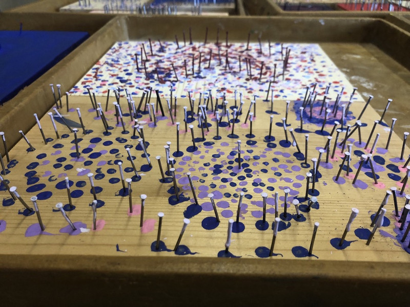 Cecilia Díaz kommt ursprünglich aus Chile in Südamerika. Sie kam nach Deutschland, um Malerei zu studieren. Ihr Professor hat den beiden den Auftrag gegeben, ein großes Wandgemälde zu malen. Sie haben sich dieses Motiv ausgesucht, um auf die Lage in Chile aufmerksam zu machen. Und um zu zeigen, wie wichtig Freiheit und Bildung ist. Das Vorbild für die Beiden war der mutige Sänger Víctor Jara. Britta Naumann Knapp hat die Seite vom Ölgemälde gemalt, wo ein Mann mit grauen Haaren und rotem Umhang sitzt. Dieser Mann soll Víktor Jara darstellen. Cecilia Díaz hat die andere Seite gemalt.