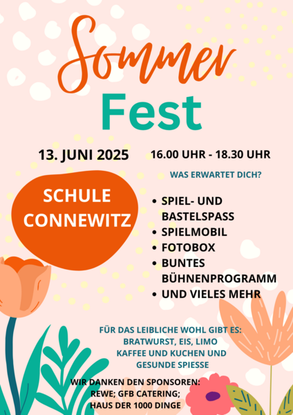 Das zweite Schulhalbjahr hat begonnen, und so geht es mit Riesenschritten auf den Sommer zu. Wer kann und mag in einem engagierten Team aus Lehrer*innen, Erzieher*innen und Eltern dazu beitragen, dass dies am 13. Juni 2025 auch kräftig auf dem Schulhof gefeiert werden kann? Dann kommt gerne zu unserem nächsten Offenen Treff zur Sommerfestplanung am Mittwoch, 12.03.2025, 19 - ca.21 Uhr in die Schulbibliothek (Raum 115). Wer an dem Termin nicht kann, aber grundsätzlich das Team bereichern möchte, kann sich natürlich auch gerne per E-Mail bei uns melden. Da jedes Jahr aktive Mitglieder mit ihren Kindern die Schule verlassen, braucht es immer wieder neue Eltern, die sich einbringen, also schnuppert doch schon mal bei uns rein. Wir freuen uns auf euch!