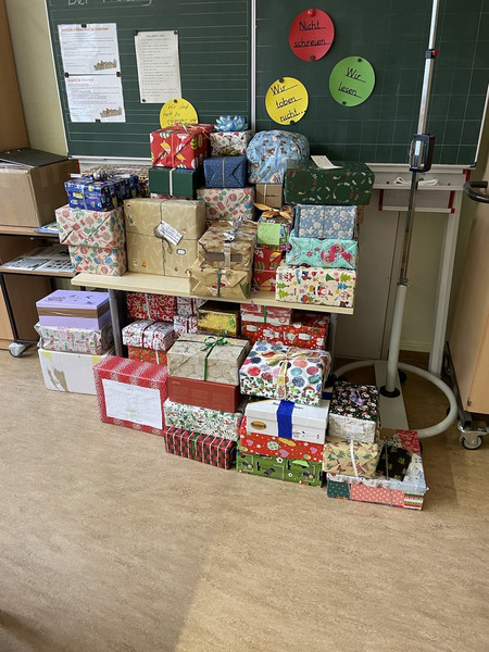 Außerdem wurden richtig viele gefüllte und hübsch verpackte Schuhkartons für die Kinder in der Ukraine gesammelt.