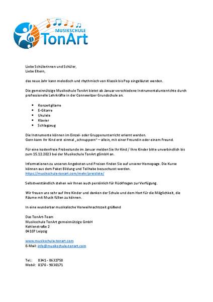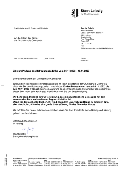 Liebe Familien der Schule Connewitz,