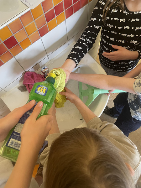 Den letzten Schultag vor den Osterferien haben wir genutz, den Frühling endgültig einziehen zu lassen mit Osterbastelein, Osterfrühstück und Ostergeschichten und vor allem: mit dem Frühjahrsputz. Ganz viele kleine und große Hände halfen mit, dem Dreck der letzten Monate zu vertreiben und nun strahlt das Haus wieder.