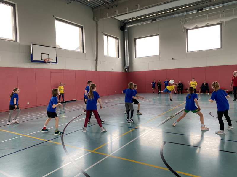 Qualifiziert hatte sich unsere Schulmannschaft durch den Vorrundensieg schon am 15.11.23 und seitdem fieberten alle dem großen Finale entgegen und trainierten, wann immer es möglich war. Durch Streiks musste der Termin mehrmals verschoben werden und auch dieser Freitag wackelte als Turniertag. Zum Glück konnten alle Mannschaften mit den S-Bahnen anreisen und voller Aufregung machten wir uns gegen 10 Uhr auf nach Engelsdorf. Wir starteten gleich mit einem tollen Sieg gegen die 157. Grundschule. Kurze Trinkpause und dann folgten die nächsten Spiele, die alle super spannend, fair, rasant und voller Emotionen waren. Alle im Team zeigten vollen Einsatz und kämpften bis zur letzten Sekunde um jeden Punkt. Am Ende fehlte uns dann doch das notwendige Glückund wir belegten den 4. Platz. Trotz alledem war es für alle ein tolles und aufregendes Sportevent. Vielen Dank an alle, die uns dabei unterstützt und angefeuert haben.