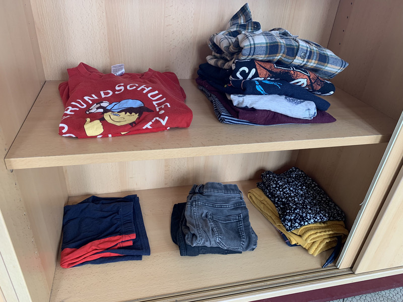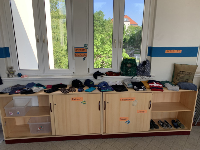 Komm doch bitte gern vorbei und hole die Sachen deines Kindes. Blaue Etage, Nähe Sekretariat, Bereich vor der Aula. :)