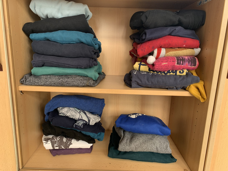 Hier seht ihr die aktuellen Fundsachen, die ihr euch selbst in der Fundgrube im Lichtflur vor der Aula abholen könnt. Solltet ihr wertvolle Dinge vermissen, fragt bitte im Sekretariat bei Paul oder Theresa nach - bspw. Brillen, Schmuck, Handys oder Portmonees werden dort abgegeben.