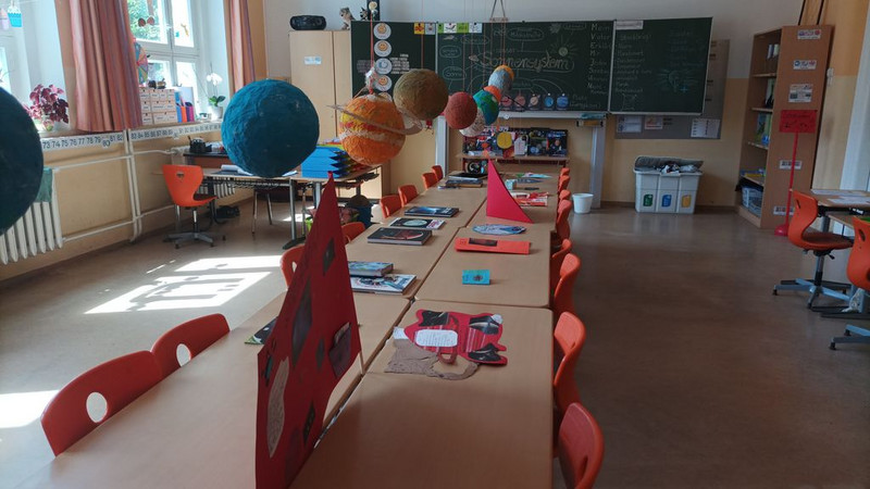 Dazu besuchten wir anfangs ein Planetarium und bastelten anschließend alle Planeten des Sonnensystems aus Pappmaché. Zu jedem Planeten fertigten wir außerdem unterschiedliche Steckbriefe an. Für die Kinder erstellten wir zusätzlich Rätsel und Puzzle.