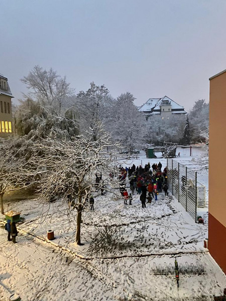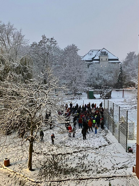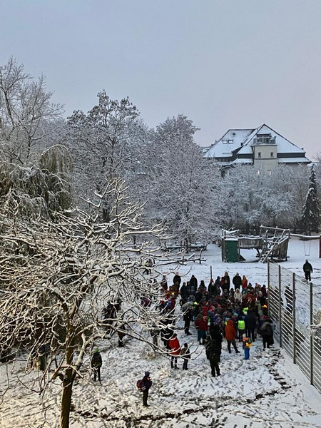 so sieht es seit gestern vor dem Einlass aus: Kinder und Erwachsene singen gemeinsam weihnachtliche Lieder auf dem Schulhof. Die Stimmung ist sehr schön, das Wetter spielt mit und der Eintritt ins Schulhaus ist irgendwie ... festlich. Vielen Dank für die gemeinsame Zeit und die rege Teilnahme. Hoffentlich erwächst daraus eine Adventstradition!