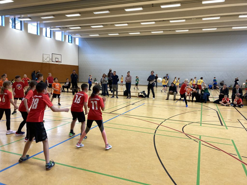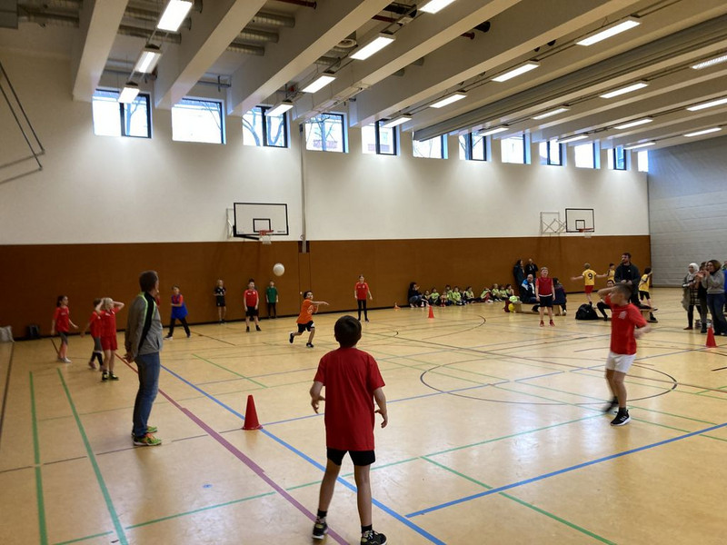Nachdem die Zusammensetzung der Spielgruppe zunächst aufgrund von Krankheit und Sportverletzungen auf der Kippe stand und die leitende „Trainerin“ Frau Freiberg ausfiel, brachen wir am Turniertag letztlich nach der fünften Stunden mit gutgelaunten 16 Kindern etwas überhastet auf. Trotz vergessenen Balls für die Erwärmung fand sich das Team im Lokalderby gegen die gastgebende Kurt-Masur-Grundschule gut zurecht und holte souverän den ersten Sieg im ersten Spiel, woran vielleicht auch der elterliche Fanblock seinen Anteil hatte. Im Spiel Zwei gegen die Holzhausener Kinder lief es anschließend ebenfalls gut, sodass der zweite Sieg sicher war. Mit einem knappen 5:4 (verbleibende Kinder im Feld) war das dritte Spiel gegen Portitz weniger eindeutig, aber letztlich gewonnen und sehr spannend.
