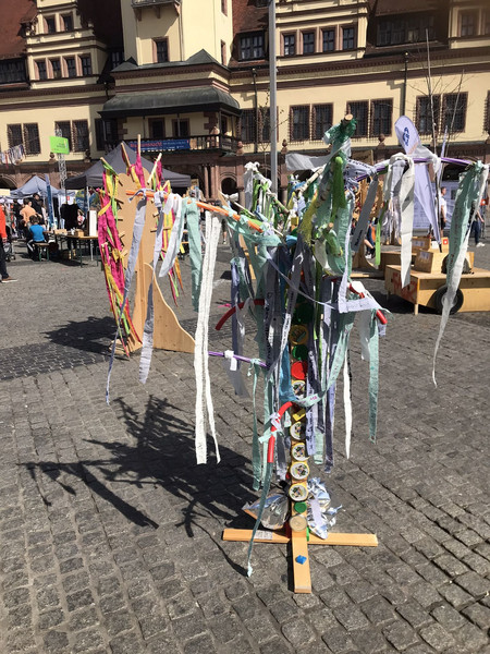 Zum Leipziger Zukunftstag auf dem Marktplatz vor dem alten Rathaus hatte dieses Jahr auch unsere Schule einen Zukunftsbaum gestaltet und mitgebracht. Erdacht und vorbereitet in der GTA Upcycling wurde der Baum mit Wünschen unserer Schülerinnen und Schüler geschmückt und vor das alte Rathaus gestellt.