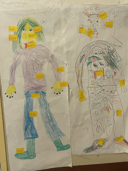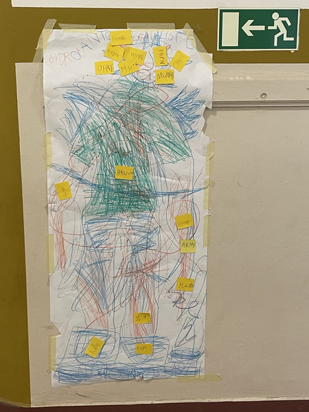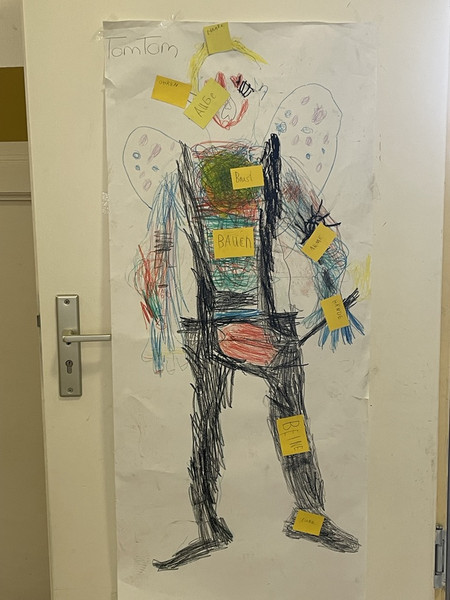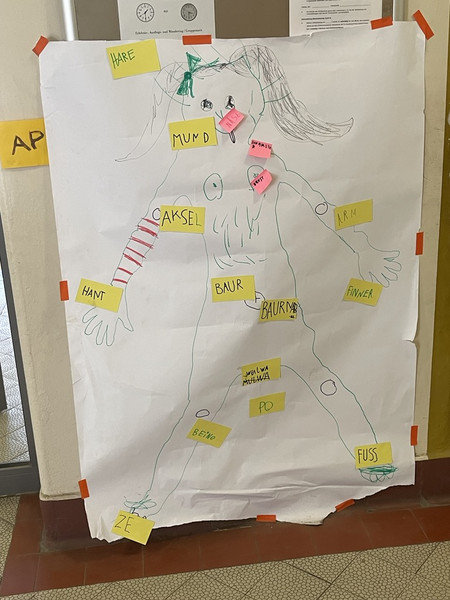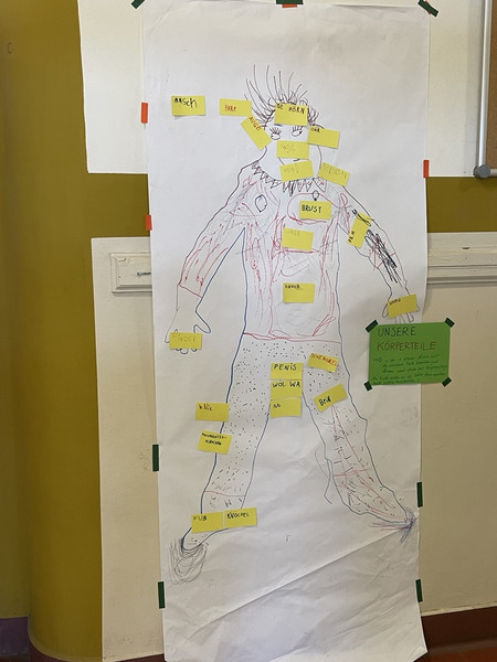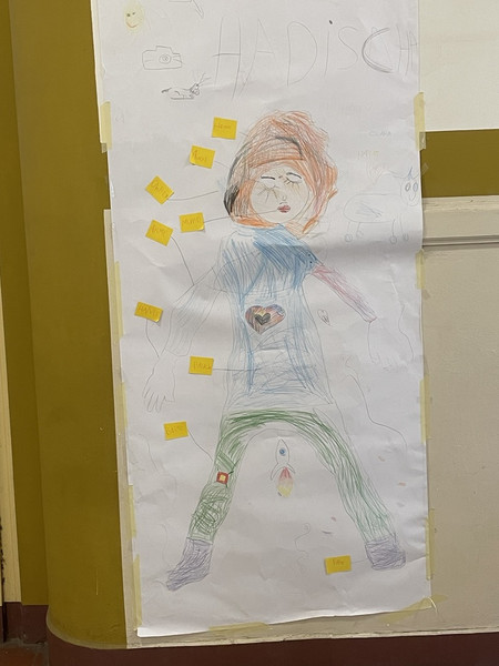 Auch unsere ersten Klassen waren kreativ unterwegs und haben ihre Ergebnisse des Körperprojekts in der 3. Etage aufgehängt.