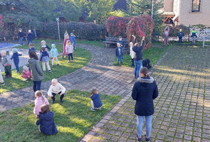 Zum Schluss sangen wir unserem neuen Bäumchen noch ein Ständchen, damit er gut anwächst. Die im Neubaugebiet wohnenden Kinder erklärten sich bereit, regelmäßig nach dem Baum zu sehen und im Bedarfsfall zu gießen. Viel Erfolg!