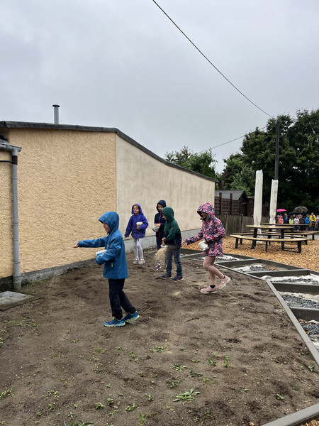 Am 29.08.2025 wurde unser Grünes Klassenzimmer eröffnet. Es befindet sich etwa 200m vom Schulgelände entfernt neben der Turnhalle. Die ca. 240qm sind mit einer Blumenwiese, einem Fühlpfad (in Entstehung), Kräuterpflanzungen, Beerensträuchern, Sitzgelegenheiten und Sonnenschirmen ausgestattet. Die Weiterentwicklung ist geplant.