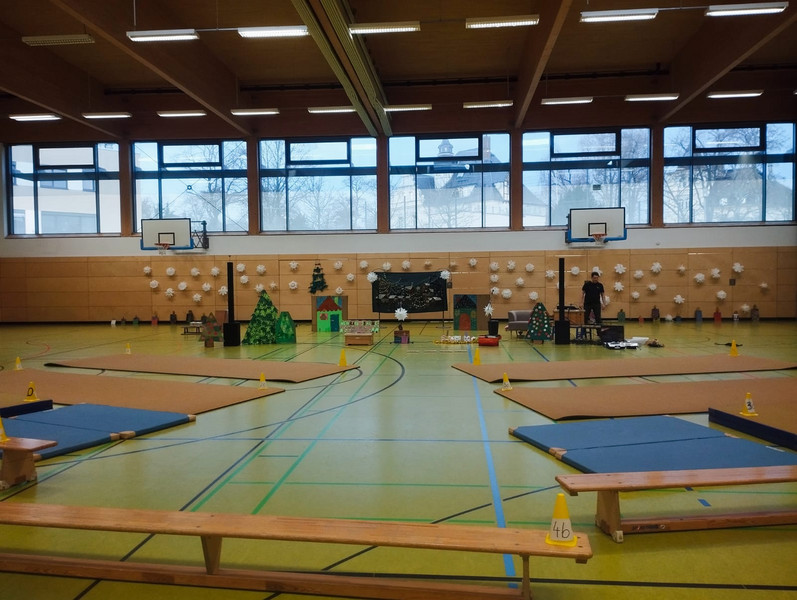 Am letzten Tag trafen wir uns alle zum Abschluss in der Turnhalle und sahen uns die "Geschichte vom traurigen Weihnachtsbäumchen" an, welche die GTA "Vorhang auf!"-Kinder extra für uns einstudiert hatten. Alle waren ganz verzaubert und richtig stolz, denn bei uns heißt es nicht nur "Zuschauen" - jede Klasse macht auch mit einem kleinen Musikbeitrag mit.