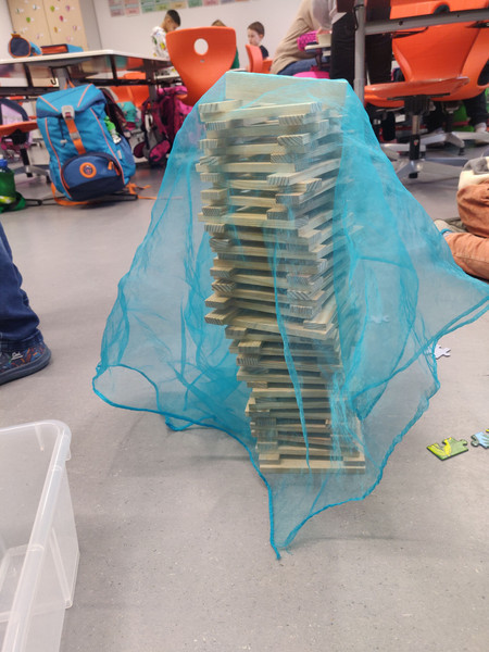 Punkt 18 Uhr hielten alle mit ihrem Gepäck Einzug. Schnell wurde es sehr kuschelig in den Klassenzimmern. Doch so schnell war an Schlafen noch nicht zu denken. Erst einmal galt es in kleinen Teams herauszufinden, ob denn nun in unserer Schule ein Schulgespenst herumspukt oder nicht? Und wenn ja, wo genau es denn wohnt. Im ganzen Schulhaus waren kleine Lesestationen verteilt, so dass ein eifriges Gewusel herrschte. Auch wenn nicht alle bis zum Schluss kamen, so haben wir schließlich erfahren, dass unser Schulgespenst Remi im Fahrstuhlschacht haust und am liebsten Erwachsene ärgert. Zu Kindern ist es eigentlich recht freundlich.