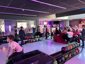 Wir haben zwei Stunden in 4 Gruppen gebowlt. Das hat allen großen Spaß gemacht. Als die Zeit um war, haben wir Mittag gegessen. Es gab Nudeln mit Tomatensauce oder Pommes mit Nuggets. Jeder von uns konnte sich noch ein Getränk kaufen. Wir liefen danach zum Bus und fuhren wieder nach Liebstadt.