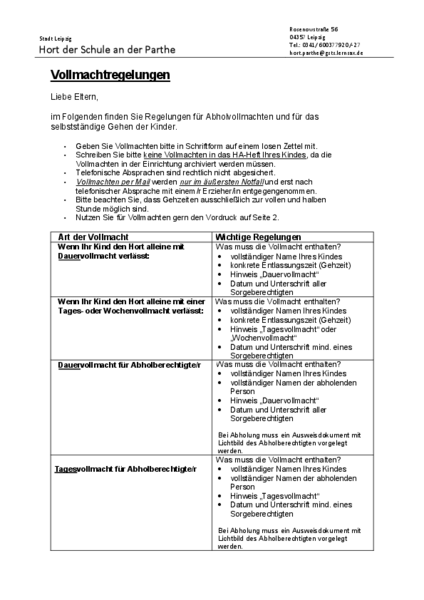wir möchten Sie darauf hinweisen, dass es verbindliche Regelungen für Abholvollmachten, und für das selbstständige Gehen aller Kinder gibt.