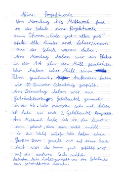 (Erfahrungsbericht Projektwoche eines Schülers, Klasse 4)