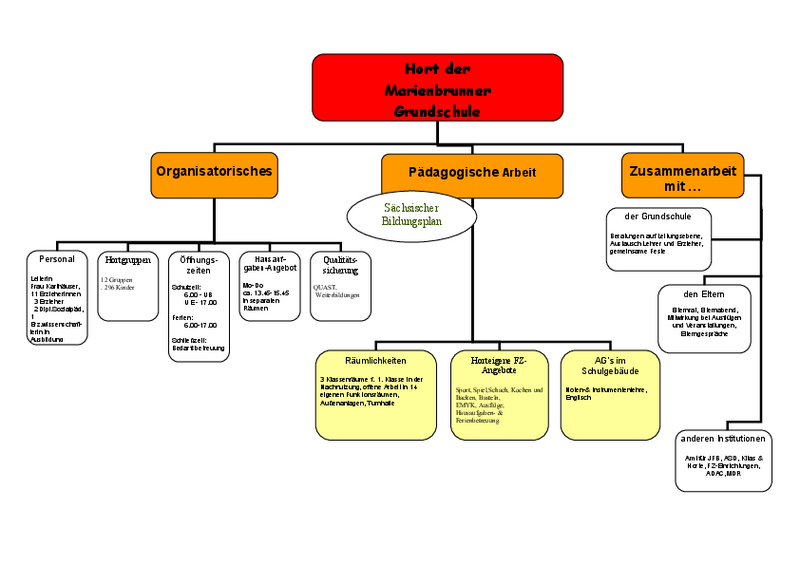 Etwa 260 Kinder der Klassen 1 bis 4 werden in horteigenen Räumen von 6.00 Uhr bis Unterrichtsbeginn und nach Unterrichtsschluss bis 17.00 Uhr betreut. In den Ferien öffnet der Hort durchgängig von 6.00 bis 17.00 Uhr. Während der Weihnachtsferien und 2 Wochen in den Sommerferien ist Schließzeit.