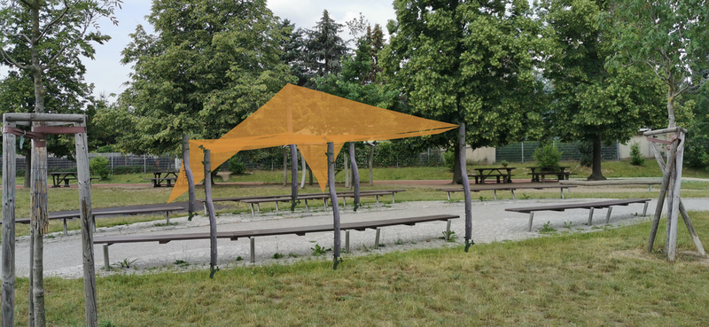 In Zusammenarbeit mit dem Schulträger wollen wir die Rutsche auf dem Rodelberg so umsetzen, dass diese jederzeit einsehbar und nutzbar wird. Die Beschattung und ebenso ein neuer Schattenplatz hinter dem Labyrinth sollen entstehen.