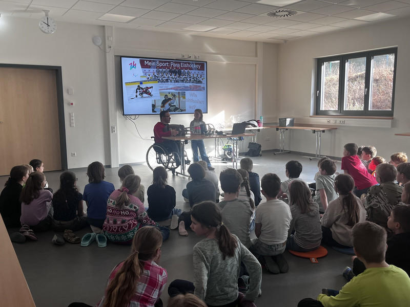 Unsere Schule erhielt am 27.2. besonderen Besuch: Paralympics‑Athlet Frank Rennhack gab den Kindern unserer Schule spannende Einblicke in seinen Sport und die Welt der Paralympics. In einer anschaulichen Präsentation erklärte er nicht nur die technischen und sportlichen Besonderheiten, sondern berichtete auch von seinen persönlichen Erfahrungen auf internationalen Wettbewerben.