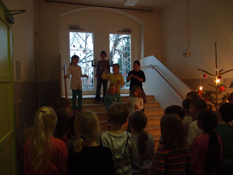 An den Adventsmontagen gestalten die Kinder des Chores der Grundschule Naußlitz vor dem Unterricht ein kleines Programm mit weihnachtlichen Liedern und musizieren. Somit stimmt der Chor in die Woche ein. Alle anderen Schüler können ihr Liedgut aus dem Musikunterricht aber auch anwenden. Eltern, Geschwister und Großeltern sind herzlich eingeladen!