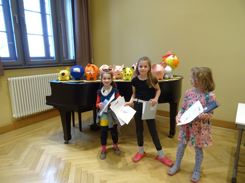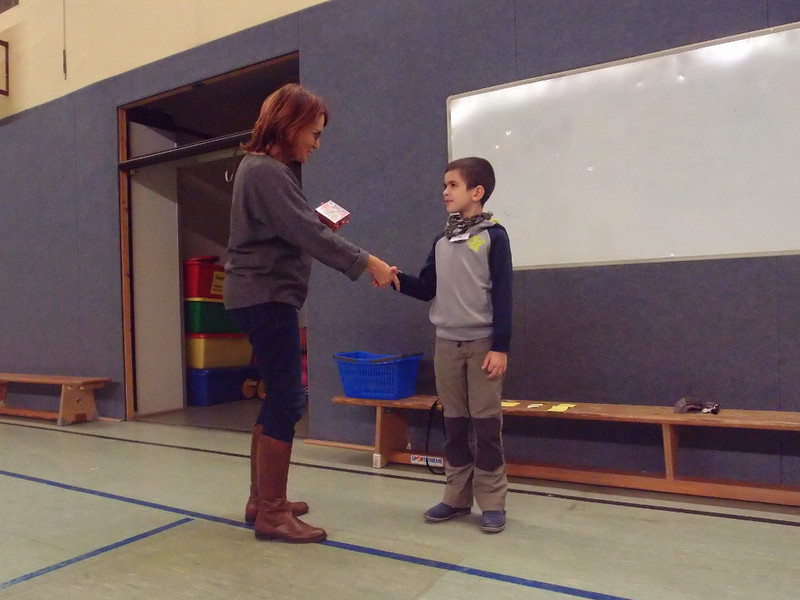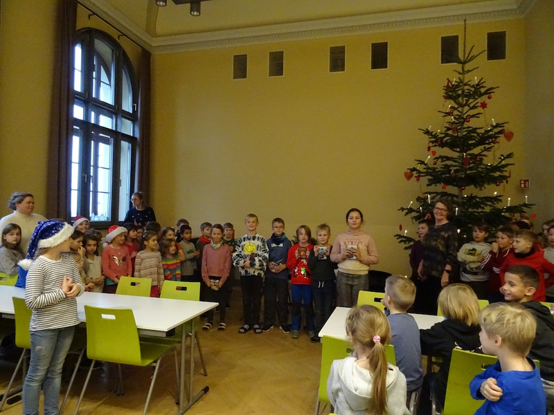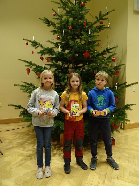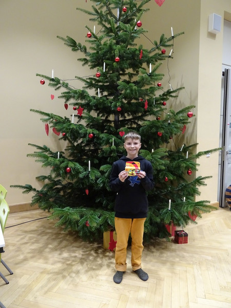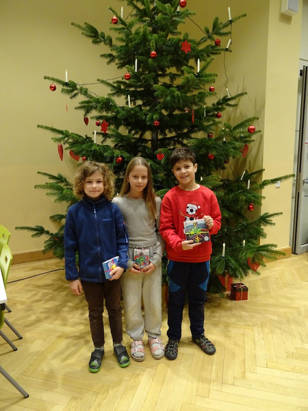 Im Dezember erhielten die Schüler einen Weihnachtsforscherauftrag. Die Klassenstufen 1 und 2 sollten ein Flugmodell bauen, mit welchem der Weihnachtsmann gut fliegen kann. Es wurden zahlreiche Modelle mit Hilfe der Eltern gebaut, verziert und gestaltet. Jedoch hatte nicht jedes Modell die perfekten Flugeigenschaften. Die 3 besten Modelle starteten in der Endrunde aus dem 2. Obergeschoss der Schule. Jonathans Modell gewann!