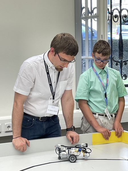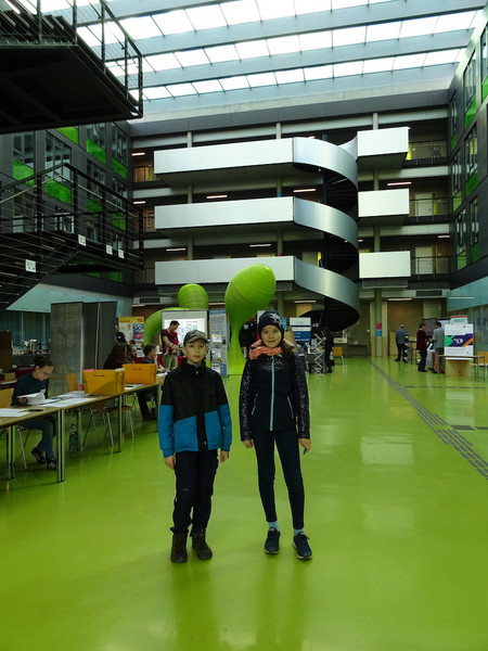 Die beiden Erstplatzierten, Paul und Peter, durften am 08.03.2018 an der nächsten Stufe an der TU Dresden teilnehmen. Beide waren sehr aufgeregt und stellten sich erneut den theoretischen und praktischen Aufgaben. Im Foyer der Fakultät Informatik gab es auch noch viel zu bestaunen.