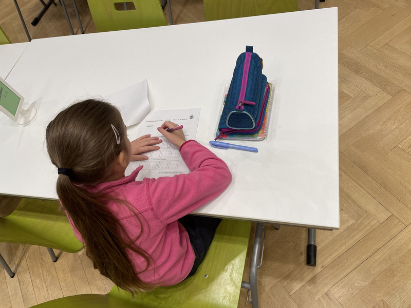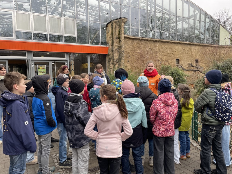 Am 12. März 2025 stellten sich drei Schülerinnen der Klasse 4c den Aufgaben der nächsten Stufe an der TU Dresden. Es war ganz schön schrierig, die praktische Aufgabe "Erstellen einer Eintrittskarte mit geometrischen Formen für den Zoo Dresden nach vorgegbenen Muster" umzusetzen. Im Theorieteil erreichten unsere Teilnehmerinnen volle Punktzahl. Im Anschluss ging es als Auszeichnung mit den Zooscouts noch in den Dresdner Zoo.