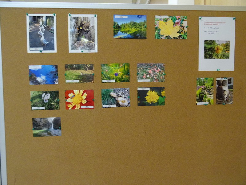 Zum 12. Mal fand der schulinterne Fotowettbewerb statt. Mit dem Fotoapparat oder Handy ging es auf die Suche nach dem besten Motiv "Wunder der Natur". Insgesamt wurden 50 Fotos eingereicht: leuchtende Herbstblätter, beeindruckende Pilze, gigantische Steine, Wurzellabyrinthe und viele Tiere. Die Jury hatte es ganz schön schwer. Herzlichen Glückwunsch den Siegern!