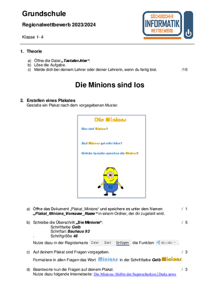 Auch in diesem Schuljahr beteiligte sich 10 Schülerinnen und Schüler der Grundschule Naußlitz am Sächsischen Informatikwettbewerb. Am 09. Januar 2024 lösten sie die Aufgaben rund um die Minions im Computerkabinett. Am letzten Schultag vor den Winterferien wurden die Sieger ausgezeichnet. Herzlichen Glückwunsch!