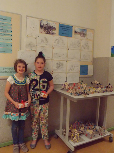 Die Schüler der Klassenstufe 2 traten im Schuljahr 2014/2015 als Partner im Wettbewerb an. Es galt, das Klettergerüst im Modell so detailgetreu wie möglich nachzubauen. In der Auswertung wurden Teamfähigkeit, Skizzieren, Umgang mit Werkzeugen, Ordnung am Arbeitsplatz, Materialeinsatz, Stabilität und Detailtreue berücksichtigt. Herzlichen Glückwunsch an Flora und Sharon, denen dies am besten gemeinsam gelungen ist!