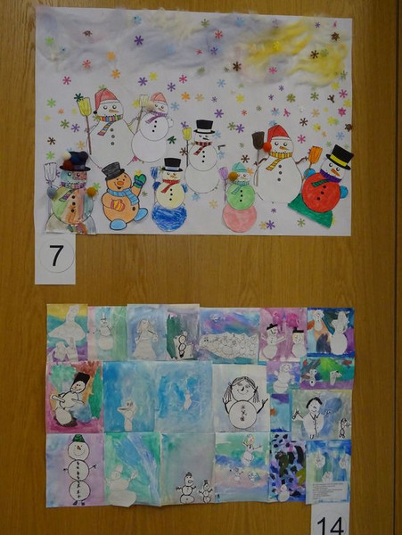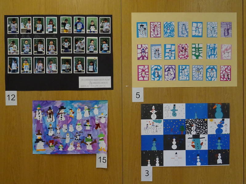 Vor den Winterferien beteiligten sich (fast) alle Klassen am Malwettbewerb "Ein Schneemann kommt selten allein". Die Schülerinnen und Schüler hatten tolle Ideen, welche sie gemeinsam mit ihren Klassenleitungen umsetzten. Herzlichen Glückwunsch der Klasse 2d zum Sieg! Die Jury hatte es nicht einfach.