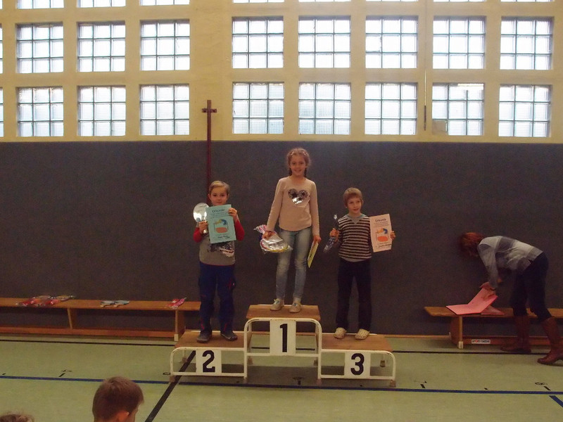 Im November 2016 nahmen 25 Schülerinnen und Schüler der Klassenstufen 3 und 4 an der 56. Mathematikolympiade teil. In der Klassenstufe 3 hatten Paul und Caroline die Nase vorn. Flora aus der Klasse 4 erzielte mit großem Erfolg 36 von 40 Punkten. Dies bestärkte sie, auch am Mathematikwettbewerb am Marie-Curie-Gymnasium Dresden teilzunehmen. Auch hier gab es wieder einen 1. Platz. Herzlichen Glückwunsch!