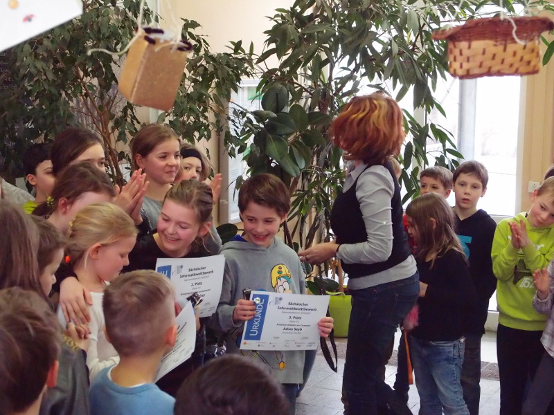 Am 21. Dezember 2016 fand der Regionalwettbewerb des Sächsischen Informatikwettbewerbes an der Grundschule Naußlitz statt. 10 Schülerinnen und Schüler der Klassenstufe 3 und 4 stellten sich den theoretischen und praktischen Aufgaben. Alle waren sehr aufgeregt. Die beiden Erstplatzierten, Lena und Johanna, durften am 08.03.2017 an der nächsten Stufe an der TU Dresden teilnehmen.