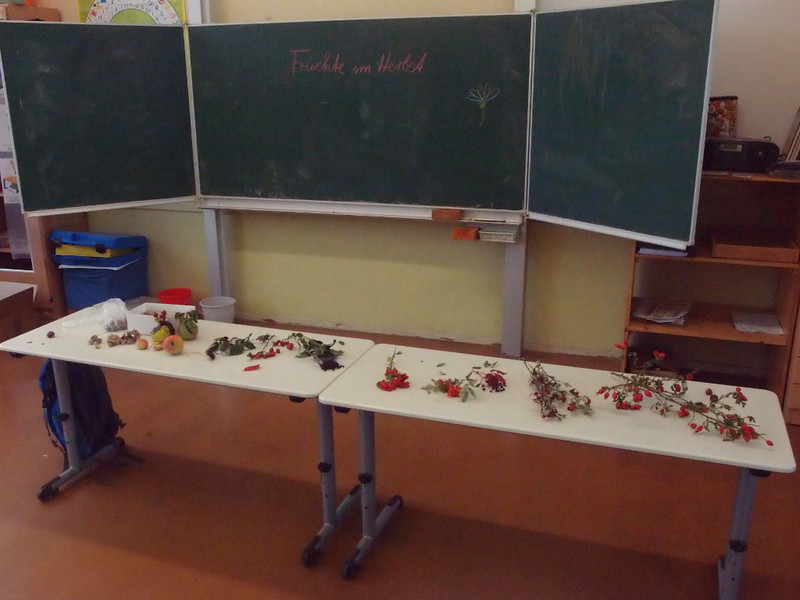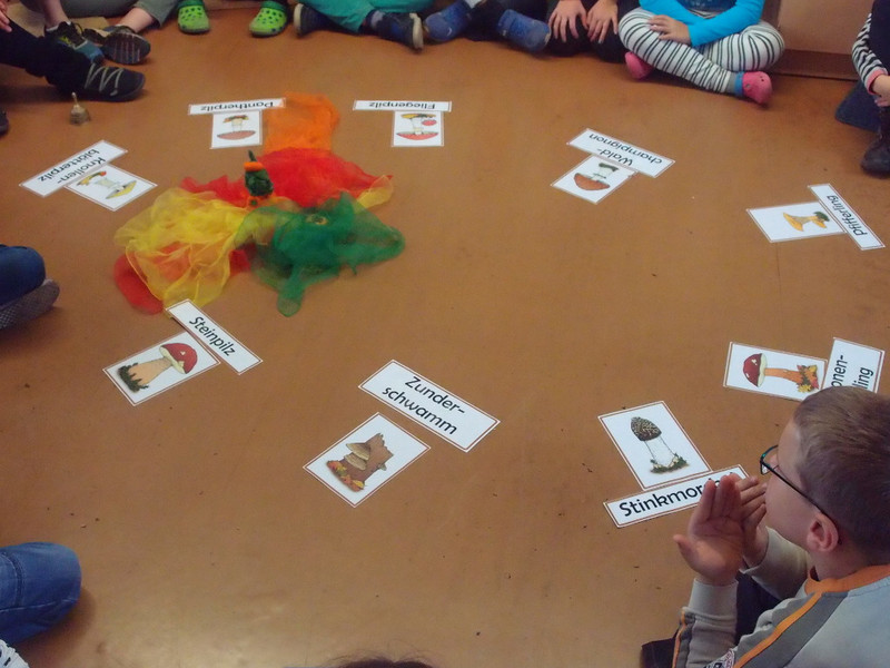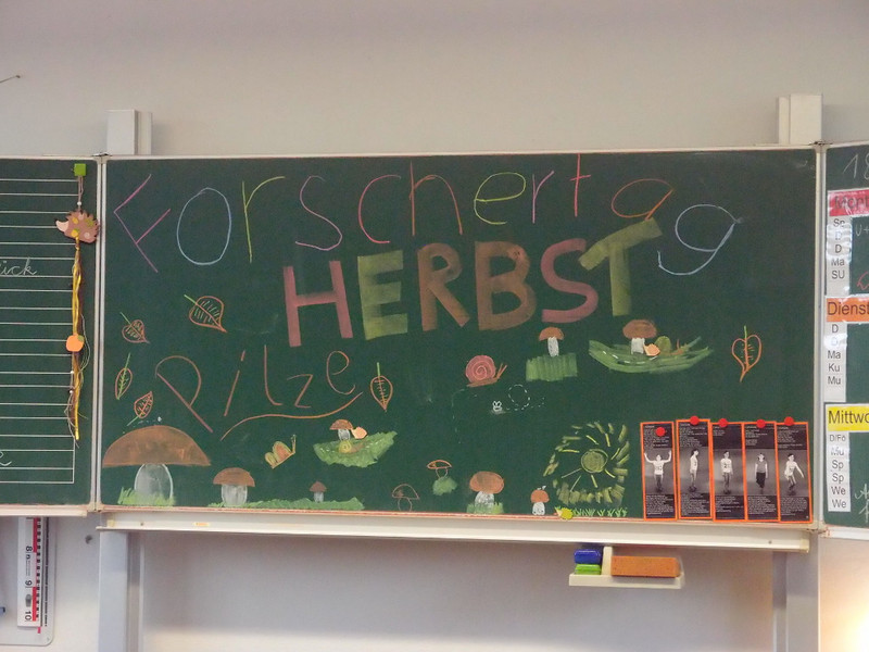 Am 22. September 2017 erforschten die Schülerinnen und Schüler in 12 Kursen die Phänomene des Herbstes: Früchte des Herbstes, Im Dunkeln gesehen werden, Blätterdrachen, Kastanienspiel, Apfeltaschen- und Apfelsaft, Apfeldruck, Blätterfrotagen, Wind messen, Die Blattfarbe Grün, Pilze, Der Igel und Nebel - an diesen Stationen wurde gebastelt, gezeichnet, beobachtet, experimentiert, genascht, gespielt .... Zum Schluss erhielten alle Erstklässler die Sicherheitswesten des ADAC, damit sie in der dunklen Jahreszeit gut gesehen werden.