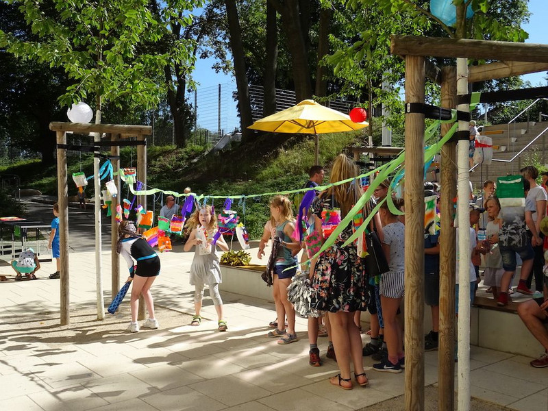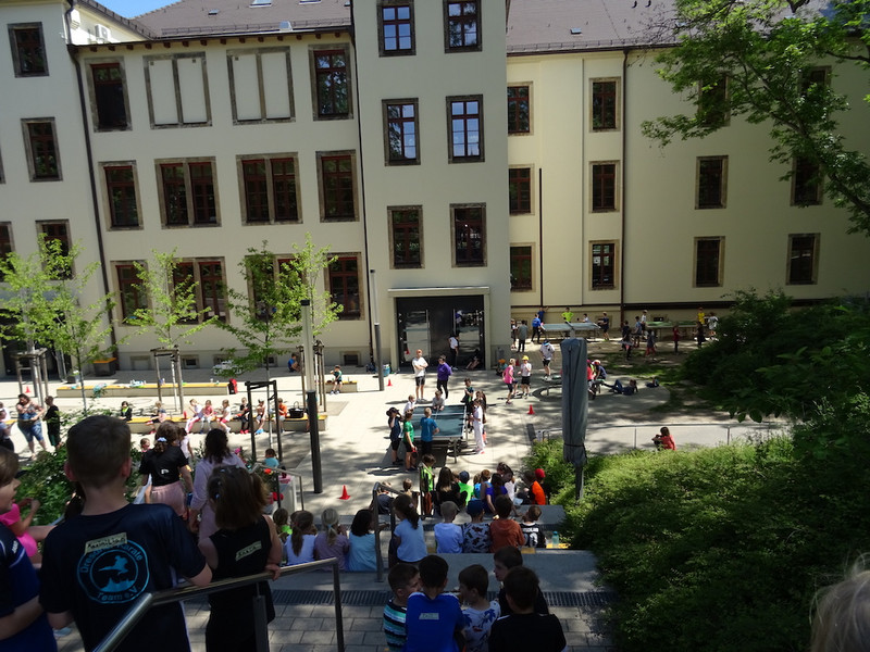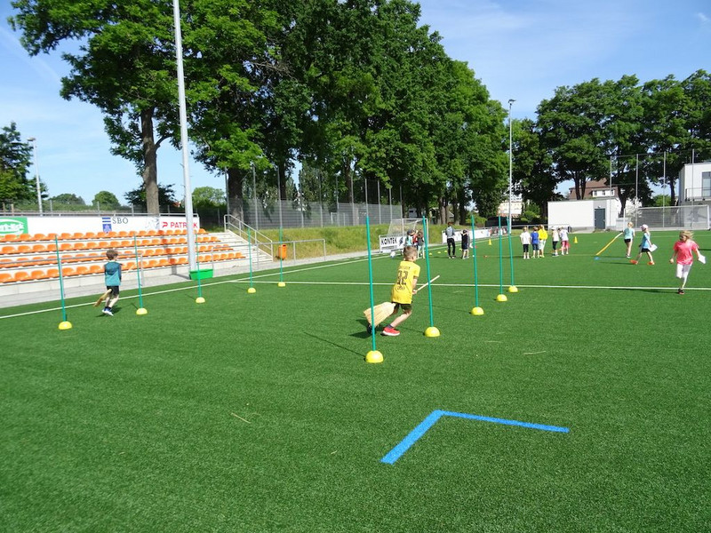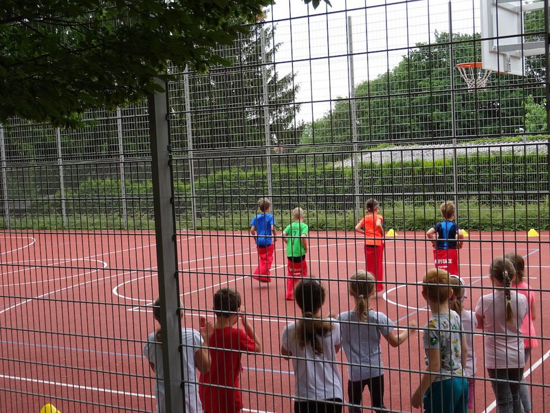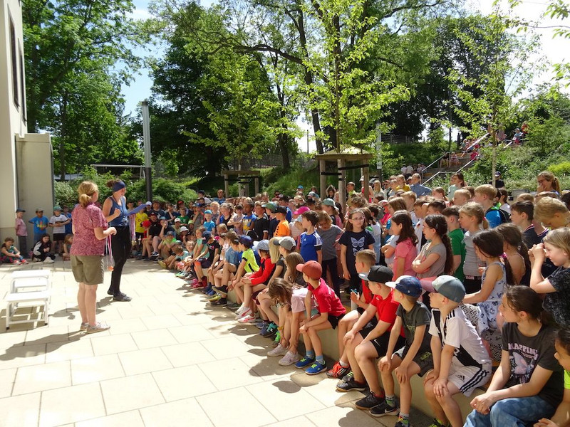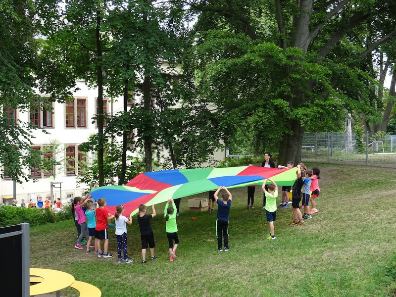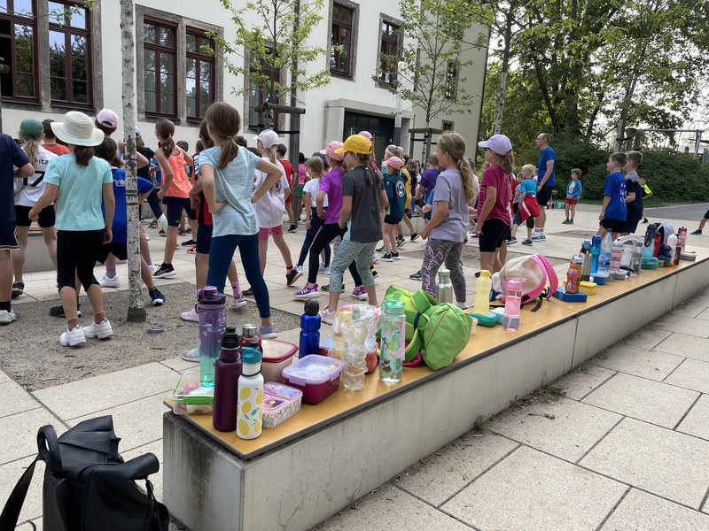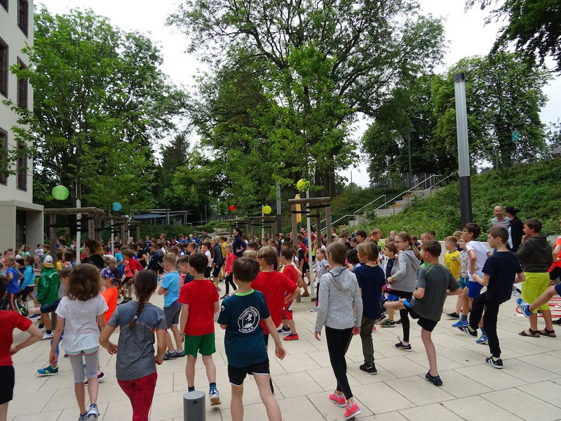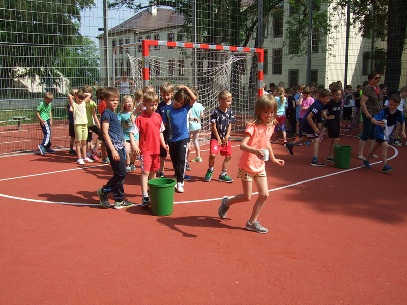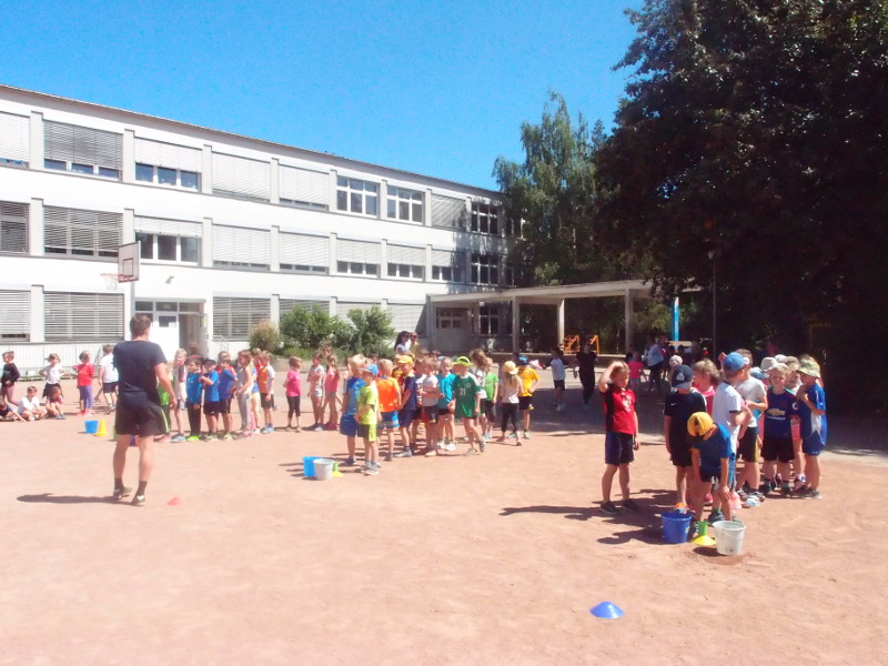 Am Ende der Projektwoche begingen alle Schülerinnen und Schüler den Tag des Schulsports. Anknüpfend an das Thema "Reise um die Welt" standen viele Stationen zu "Sportspiele der Welt" auf dem Programm. Zum Abschluss gab es traditionell unsere Wasserbecherstaffel und zur Belohnung für alle ein Eis.