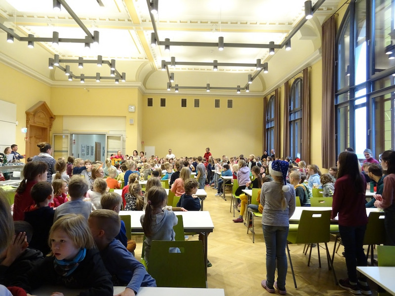 Am letzten Schultag vor Weihnachten haben wir Kinder bei verschiedener Wettbewerben geehrt, uns bei den Küchenfrauen und beim Hausmeister für die geleistete Arbeit bedankt und gemeinsam Weihnachtslieder in der Aula gesungen. Nach fast 10 1/2 Jahren haben wir Frau Heider, unserer Schulsekretätin, mit Blumen und Geschenken in den wohlverdienten Ruhestand verabschiedet.